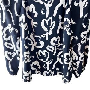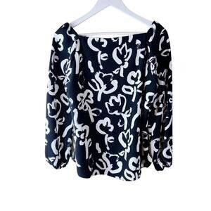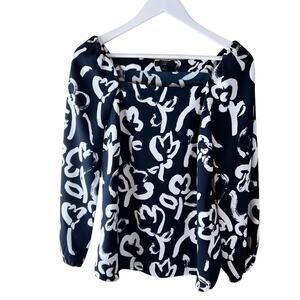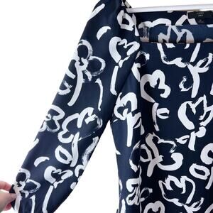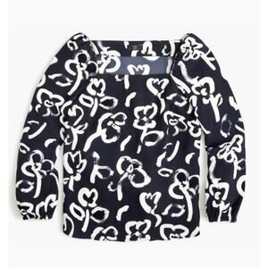 J Crew Floral Brush Stroke Top Sz 6 Crepe Navy Ivory Puff Sleeves Square Neck