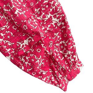 J. Crew Floral Button-Front Ruffle Neck Popover Blouse Top Women Small Pink