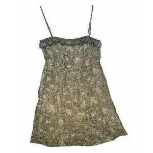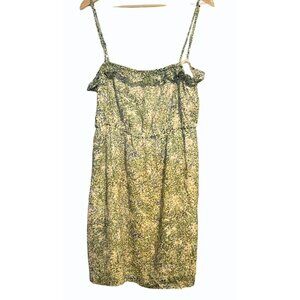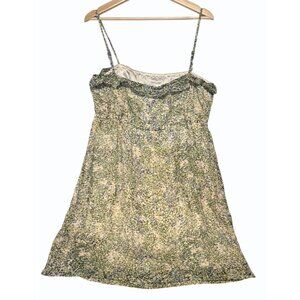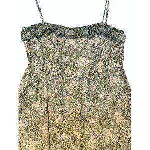 J Crew Floral Green & Cream Sleeveless Silk Dress Size 8 Adjustable Straps