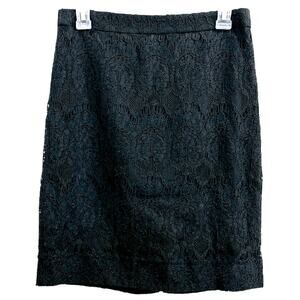 J. Crew Floral Lace Black Knee Length Pencil Skirt NWT 2