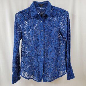 J. Crew Floral Lace Button-Down Shirt – Cobalt Blue | Size 6 | Statement Sheer
