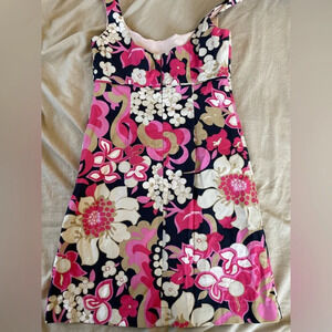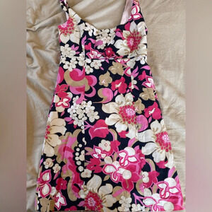 J. Crew floral sheath dress lined and sleeveless. Navy, white and pink floral design. Zipper closure on the back. Decorative bow under the bodice. Hits above the knee. Excellent condition no flaws. Size women’s 8. Approximate measurements: