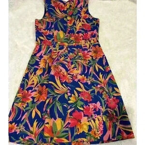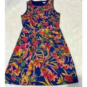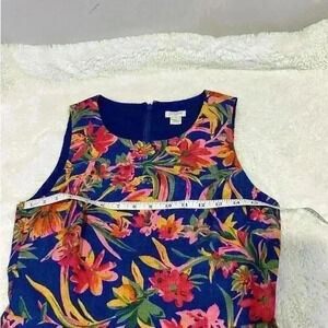 J Crew Floral Pleated Shift Dress $118 Size 4P Bright Blue Pink Green Yellow. Condition is Pre-owned. Shipped with USPS Ground Advantage.