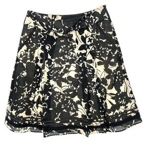 J. Crew Floral Print Skirt, Size 4 Cotton & Ramie, Black & Tan WIth Pockets