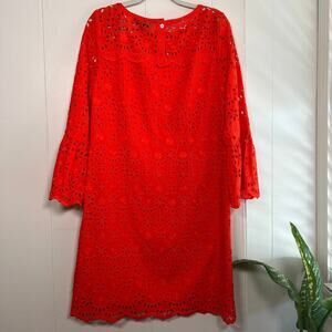 J. Crew Floral Red Eyelet Shift Dress Bell Sleeves Sz 6