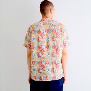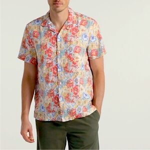 J. Crew Floral Shirt Men's Sz L 100% Linen Camp Collar Button Up Short Sleeve