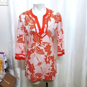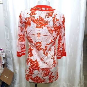 J. Crew Size XS Orange and White Floral V-Neck Tunic. Bust is 19 inches across.
