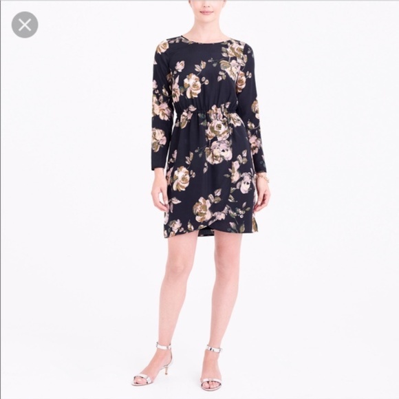 Beautiful dress from J. Crew Factory with a cinched waist and wrap detail on the skirt portion. Long sleeves, and hem hits above the knee. Runs a bit large. Very comfortable and classy. Size 6. Excellent condition -worn twince.