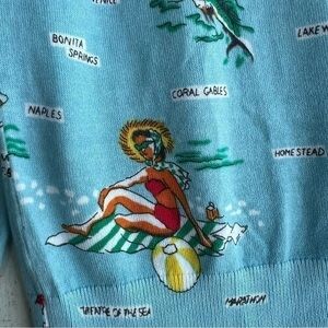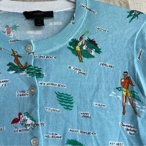 J. Crew Jackie Cardigan Florida Map Print Sz M Blue Button Sweater Cotton Blend
