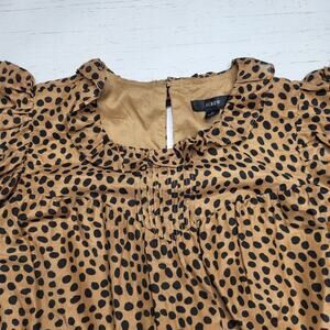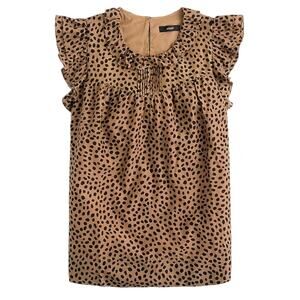 J. Crew Flutter Sleeve Cotton Silk Voile Top Leopard Dot Brown Ruffle Neck Small