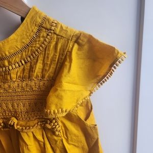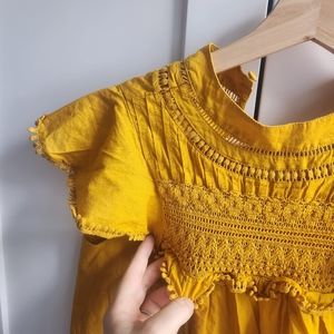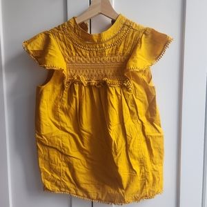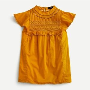 J Crew Flutter Sleeve Crochet Lace Top Marigold Yellow XXS