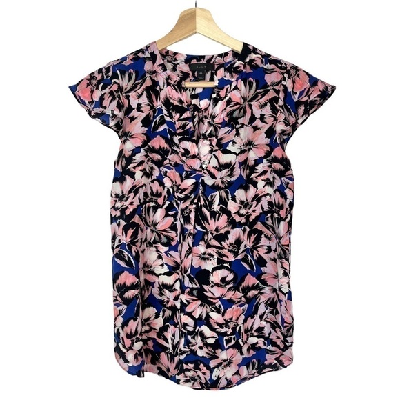 J. Crew Flutter Sleeve Hibiscus Floral Short Sleeve Blouse 00