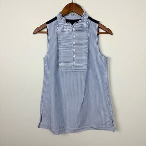 The J. Crew French Blue & White Pinstriped Bib Sleeveless Top