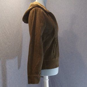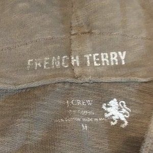 J. Crew French Terry light weight "faded / distressed" style hooded pullover with a deep drop v-neck line and front pouch pocket. Pre-owned in excellent condition. Size listed as on hoodie. Please see pictures.