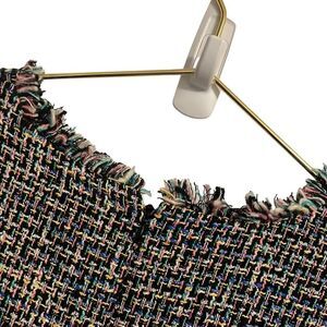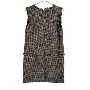 J. Crew Fringe V Neck Sleeveless Tweed Gold Button Black Pink Shift Dress Size 8