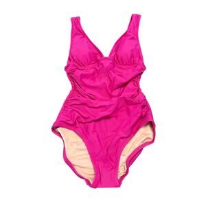 J. Crew Fuchsia Pink Ruched V Neck Plunge One Piece Swimsuit SZ 2 Beach Vacation