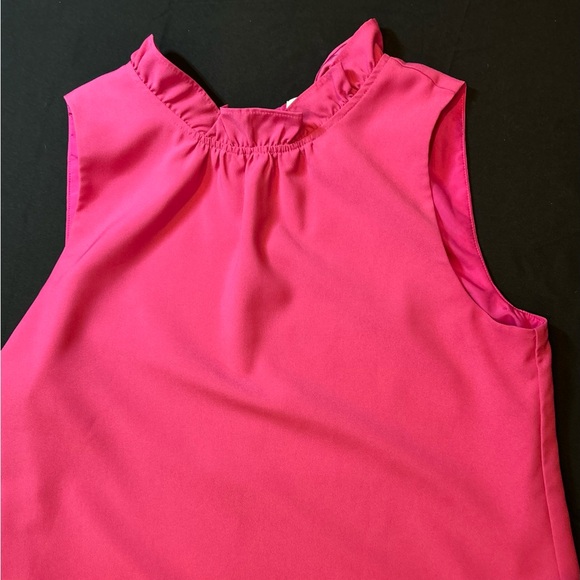 Chic fuchsia blouse with a sleeveless design. Ideal for any occasion.