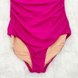 J. Crew Fushia Ruched Bandeau One-PieceSwim Swimsuit Size Small