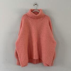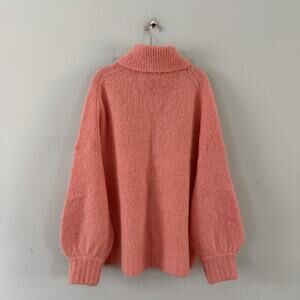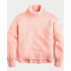J. Crew Fuzzy Balloon Sleeve Turtleneck Alpaca Merino Wool Blend Pink Sweater