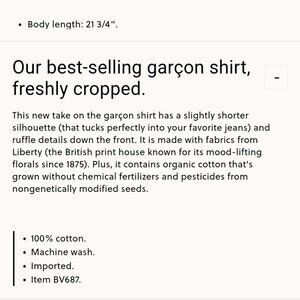 J. Crew Garcon cropped Liberty Fabric Red Floral Blouse