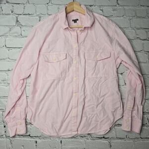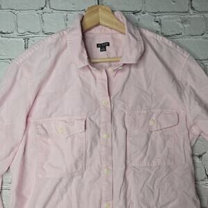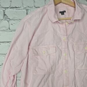 J Crew Garment Dyed Chambray Button Up Pink Collared 100% Cotton Shirt Size 10
