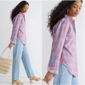 J. Crew Garçon Cotton Voile Button Down Shirt in Sunset Plaid Size 4