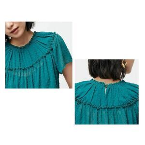 J. Crew Gathered Bib Top in Drapey Swiss Dot, Green (Spicy Jade) Size S NWT