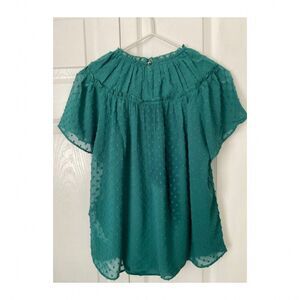 J. Crew Green (Spicy Jade) Gathered Bib Top in Drapey Swiss Dot, perfect for any occasion!