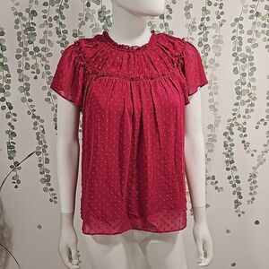 J Crew Gathered bib top in drapey swiss dot Sz XXS