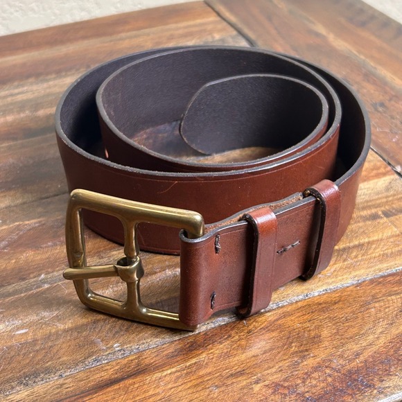 J Crew Genuine Italian Leather Belt Brass Buckle Made in USA Womens L