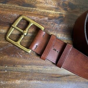 Keywords: leather belt, brass buckle, Italian leather, J. Crew belt, classic style, minimalist, everyday accessory, workwear, smart casual, dress belt, USA made