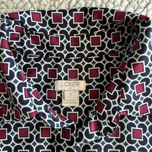 J. Crew Geometric Button Classic Knee Length Shirt Dress 2 Oxford Classic Preppy