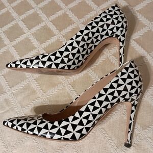 Step out in style with these chic black and white geometric pumps by J. Crew. Perfect for any occasion, these shoes offer both elegance and comfort. Previously owned, but in excellent condition!! Feel free to ask any questions and thanks for shopping my closet.