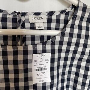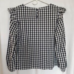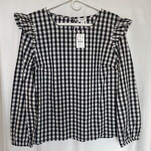 J Crew Gingham Long Sleeve Ruffle Shoulder Top Large