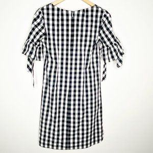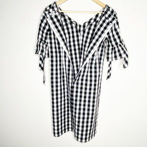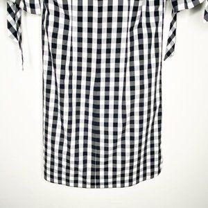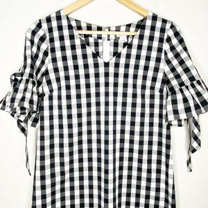 J. Crew Gingham Ruffle Sleeve V Neck Midi Shift Dress Black White Size XS