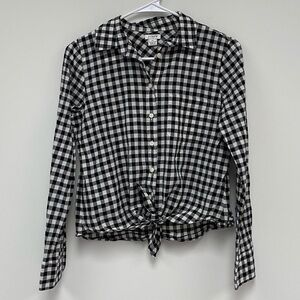 J Crew Gingham Tie Front Button up