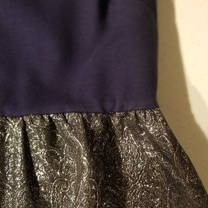 Simple navy body with metalic silvery jacquard print bottom skirt