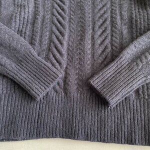 J. Crew Girl's 100% Wool Cable Knit Crew Neck Sweater, Navy Blue.  In very good gently used condition. The sizing is weird on this, the size tag reads XXS, which on their size charts says should be a 2/3, however there is no way that's possible.  I would guess it's probably for a 6/7, maybe even older.  PLEASE check measurement photos.
