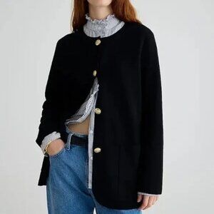 This J.Crew Giselle Sweater Blazer is the perfect blend of polish and comfort. A refined take on J.Crew’s iconic sweater-blazer style, the Giselle features a sleek, collarless silhouette, shiny gold buttons, and a longer length for an effortlessly elevated look. Wear it to work, dinner, or layered over jeans for instant sophistication.