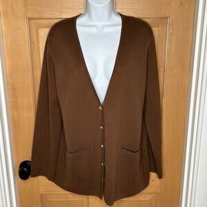 J Crew Giselle Cardigan Sweater Size M Brown Gold Buttons Jacket Relaxed BV316