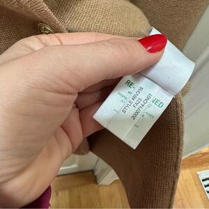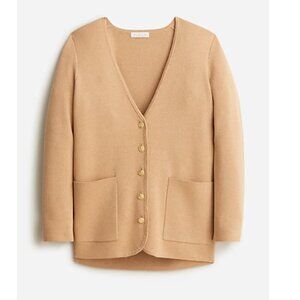 J Crew Giselle V neck sweater blazer tan camel gold buttons XS