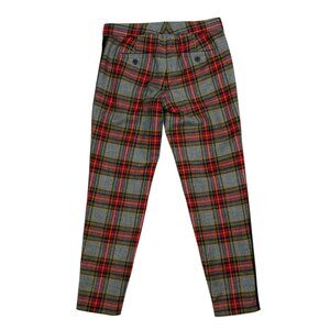 This J. Crew women's Plaid Glasgow Wool Pant makes a statement due to it's mid rise, straight leg, cropped, tuxedo striped trim, zip fly with dual slide/button, back button pockets, lining and red/gray plaid.