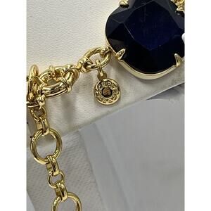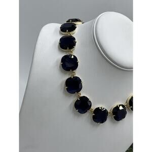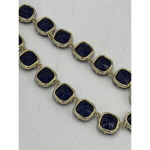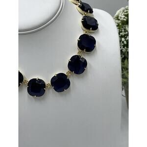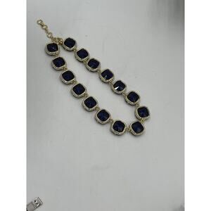 J. Crew Glass Cobalt Crystal and Cream Enamel Sides Square Gold Tone Necklace