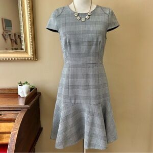 J. Crew Glen Plaid Cap Sleeve Dress Short Sleeve Sheath Flounce Hem Size 4