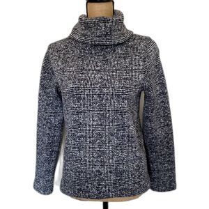 J. Crew Glen Plaid Funnel Neck Thick Fleece Pullover Black Gray Size Small