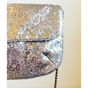 Sparkly clutch from J Crew. Perfect for weddings or formal events. Can glam up any outfit! Glitter does not fall off purse easily--no glittery mess.