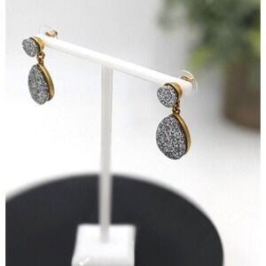 J. Crew Glittery Silver Tear Drop Shaped Druzy Like Smooth Gold Tone Earrings