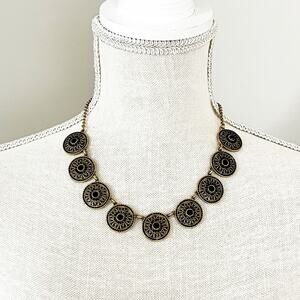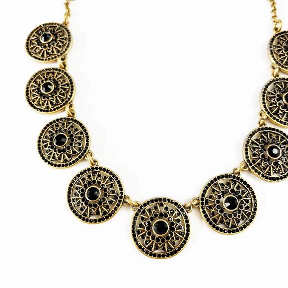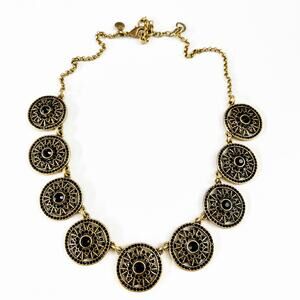 J. Crew Gold & Black Rhinestone Medallion Statement Necklace