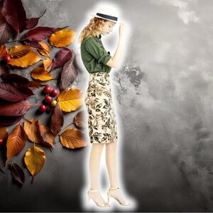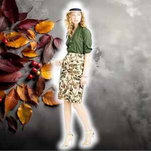 Botanical leaf pencil skirt