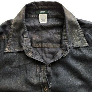 J. Crew Gold Dust Metallic Accents Black Semi Sheer Slim Fit Button Down Shirt 4